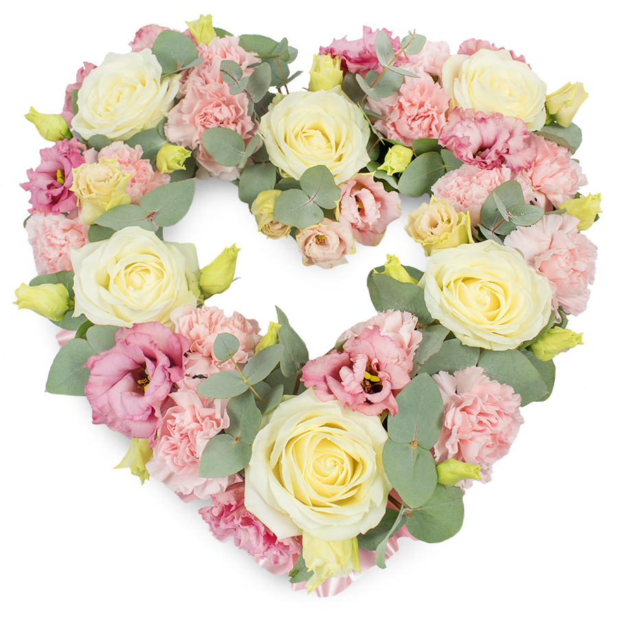 Pay your respects with our Graceful Tribute Bouquet, a beautiful arrangement designed to honor and remember your loved ones. This exquisite bouquet features white roses, pink carnations, pink lisianthus, and eucalyptus leaves, artfully combined to create a serene and elegant display.